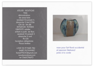 A l’occasion des Journées Européennes des Métiers d’Art, mon atelier de poterie ouvre ses portes pendant trois jours pour vous faire découvrir mon univers, entre gestes ancestraux et création contemporaine Un moment d’échange et de convivialité A bientôt